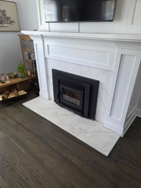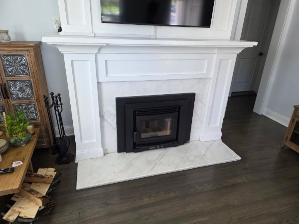 Clearance Verification: We verified that all combustible materials (mantels and trim) met the required safety offsets from the new heat source.